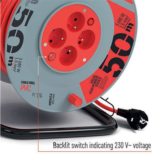 Jednou z praktických vychytávok je tlačidlo ON/OFF, ktoré značí, že je bubon pod prúdom. Okamžite tak zistíte, či je zapojený v zásuvke bez toho, aby ste to museli fyzicky kontrolovať. Okrem toho môžete samozrejme ľahko vypnúť prúd pomocou tlačidla na bubne. Tlačidlo ponúkajú napríklad bubny na vnútorné použitie, ktoré nájdete pod označením P194253 a P194504.