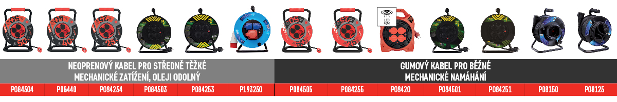 • Neoprénový kábel (vodič H07RN-F): Pre stredne ťažké mechanické namáhanie, kábel je odolný oleju