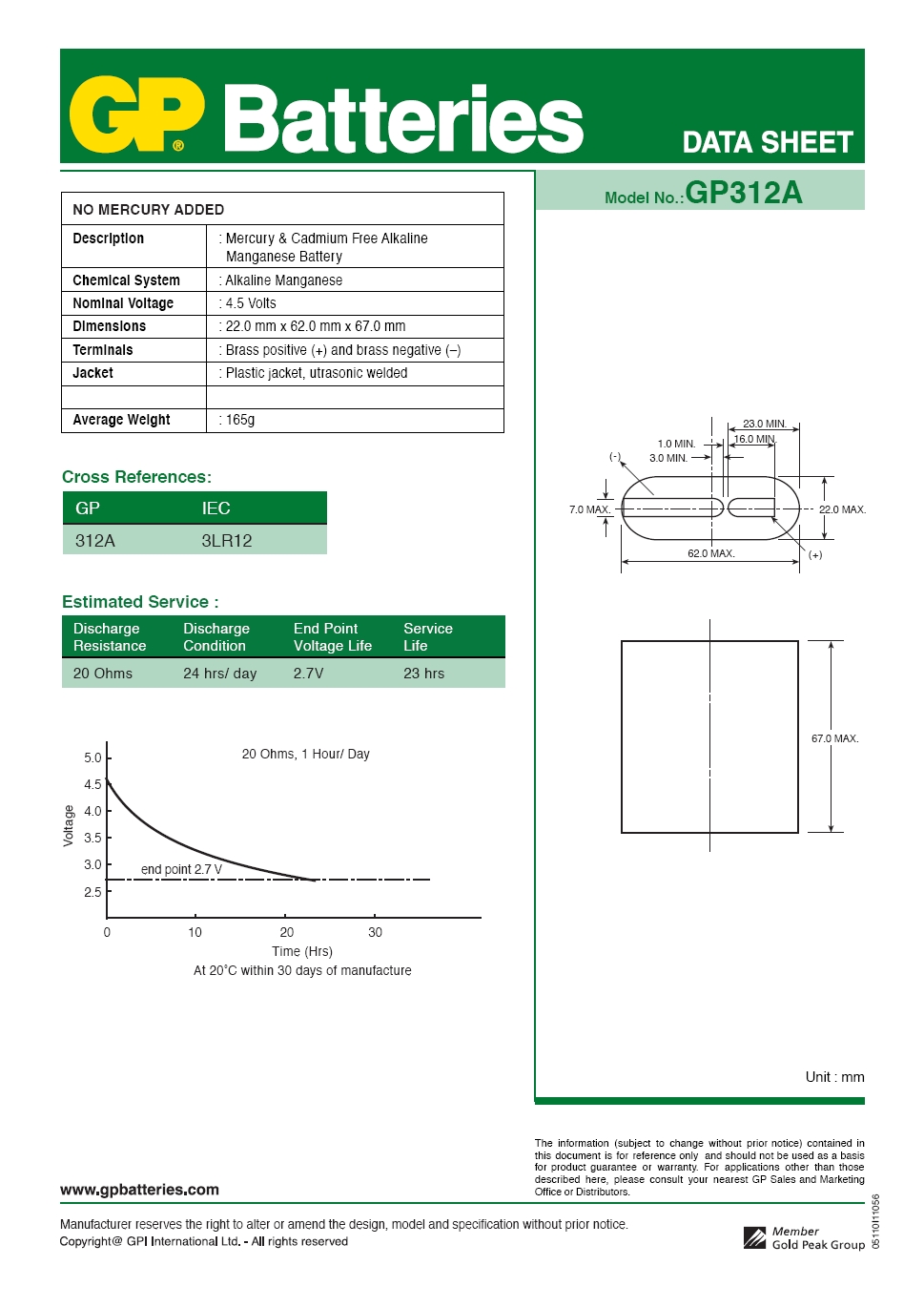 | typové označenie | 3LR12 4,5 V (plochá) |