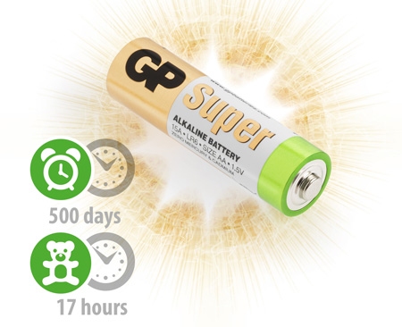 Batérie GP Super Alkaline patria k základnej výbave každej domácnosti. Najlepšie ich využijete vo všetkých prístrojoch s nízkym odberom prúdu, ako sú hodiny, budíky, hračky, diaľkové ovládania, bezdrôtové myši od počítača alebo klávesnice. Oproti obyčajným zinkouhlíkovým alebo zinkochloridovým batériám vás zásobia až 7× väčším množstvom energie.
