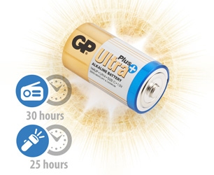 Alkalické batérie GP Ultra+ predstavujú naozaj silný hnací motor pre vašu elektroniku, pretože majú až o 60% viac energie ako obyčajné alkalické batérie. Udržia pri živote aj energeticky najnáročnejšie zariadenia - hračky, svietidlá alebo rádia - a oveľa dlhšie, ako ste zvyknutí.