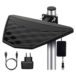 Veľkou prednosťou je skutočnosť, že je novo anténa napájaná USB adaptérom. Univerzálne napájanie umožňuje anténu používať aj v miestach bez sieťového napätia 230 V, teda napríklad v karavane, TIR alebo na dovolenke na lodi. Využijete ju tak všade tam, kde je dostupné napájanie USB adaptérom. Súčasťou balenia je napájací zdroj v podobe USB kábla a USB napájacieho zdroja. Pre napájanie je možné využiť tak USB port priamo v televízii alebo set-top boxu.