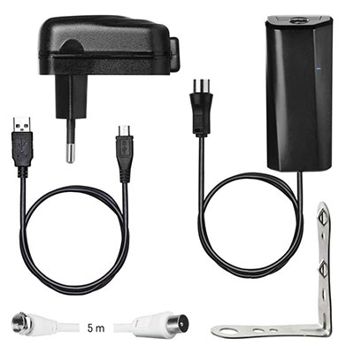 Anténa je napájaná univerzálnym USB adaptérom, ktorý umožňuje využiť anténu aj tam, kde nie je sieťové napätie 230 V. Adaptér je súčasťou balenia rovnako ako koaxiálny kábel.