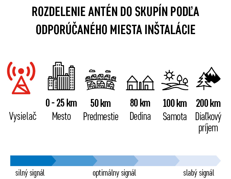 odporúčaná vzdialenosť inštalácie od vysielača 0–80 km (dedina)