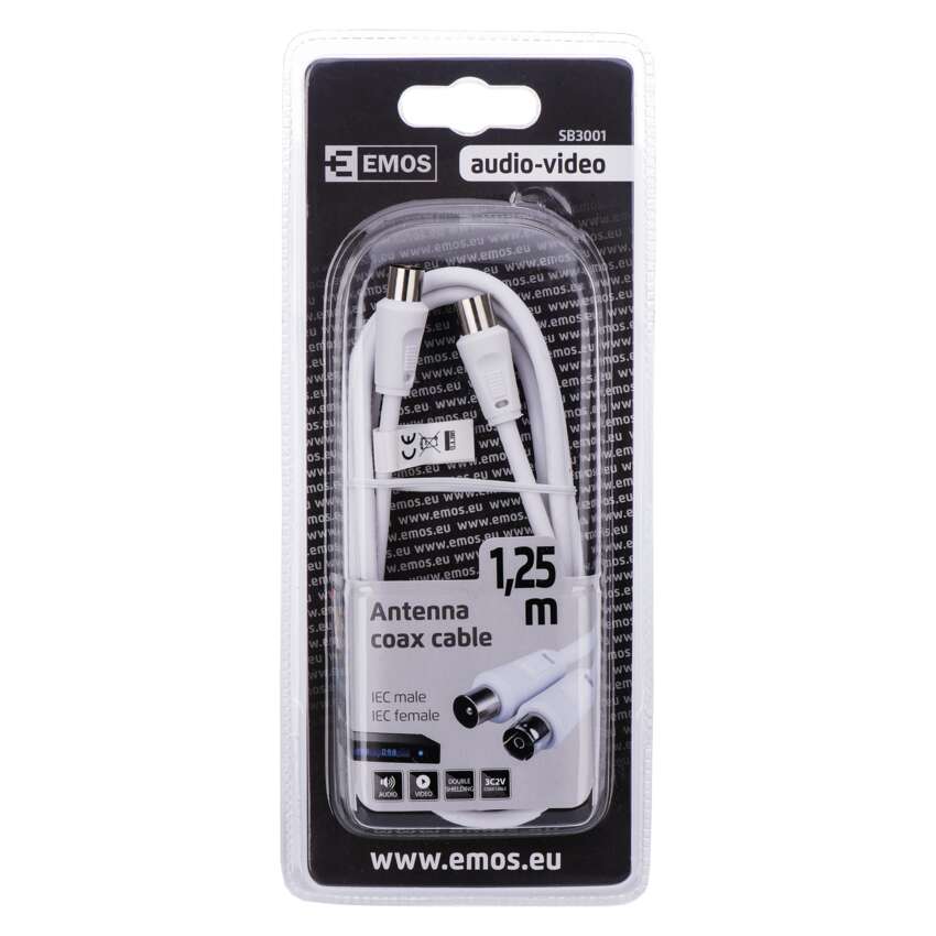 Anténny koaxiálny kábel s vidlicou a zásuvkou IEC. Kábel má dvojité tienenie pre redukciu elektromagnetického rušenia. Dĺžka kábla je 1,25 m. Koaxiálny kábel je vhodný pre SAT, DVB-T, ANT, DECODER, FLAT TV a TV.