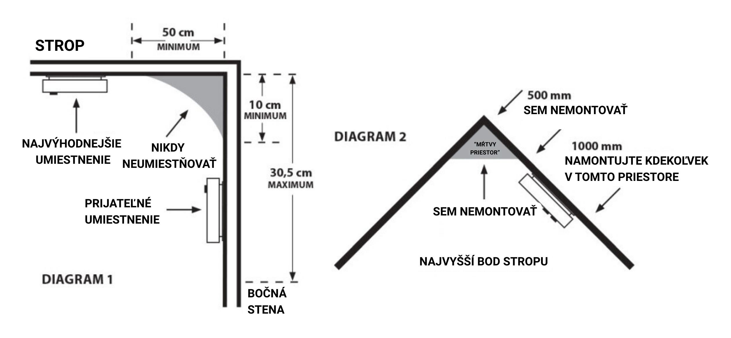 Diagram mŕtvych bodov umiestnenia detektora dymu