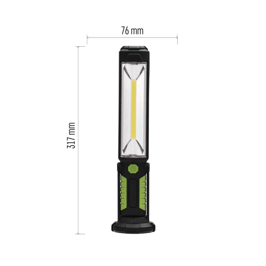Univerzálne plastové nabíjacie pracovné COB LED svietidlo, ktoré si nájde svoje miesto v každej domácnosti, dielni a všade tam, kde potrebujete zaistiť širokú plochu osvetlenia.Súčasťou je aj varovný svietiaci LED trojuholník, praktický hák a magnet pre zavesenie svietidla a napájacie zdroje do siete i automobilu.