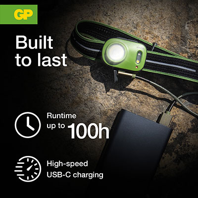 Nechcete sa príliš obmedzovať a myslieť na stav batérie čelovky? GP Xplor PHR17 ponúka až 100 hodín výdrže vďaka výkonnej batérii s kapacitou 1 600 mAh. Pomocou kábla USB-C, ktorý je súčasťou každého balenia, môžete pohodlne a rýchlo dobíjať batériu napríklad z powerbanky. Čelovka je vybavená indikátorom LED, ktorý signalizuje stav batérie a nabíjania.