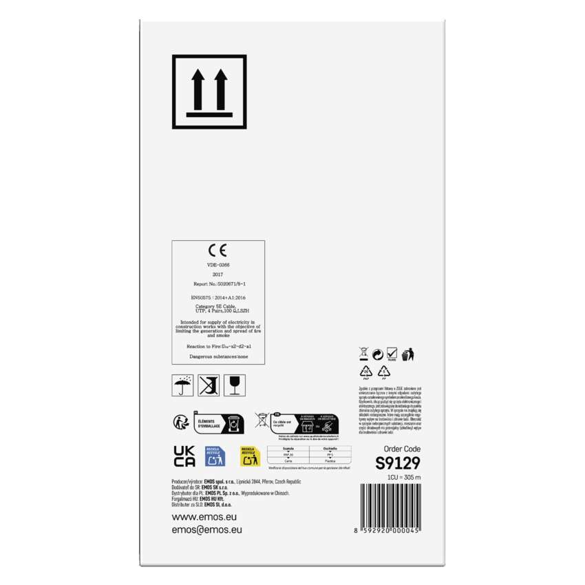 Netienený horizontálny kábel najvyššej kvality kategórie CAT5E s LSOH (LSZH) plášťom. Jadrá vodičov vyrobené z nerecyklovanej medi. Kábel spĺňa požiadavky smernice CPR o stavebných výrobkoch.
