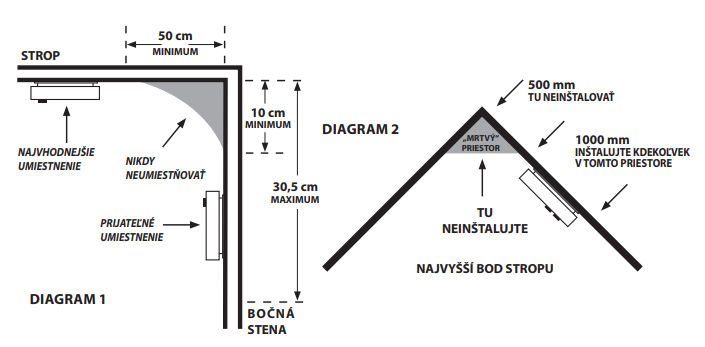 Detektor dymu GS558 odporúčame inštalovať do všetkých miestností v dome, okrem kuchýň, kúpeľní a garáží. Vodná para, para z pokrmov a výfukové plyny by mohli spustiť falošný poplach. Detektor umiestnite na každé poschodie domu, vrátane schodiska, tak, aby ste jeho signalizáciu počuli aj počas spánku.
