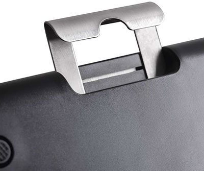 Predná strana je z nehrdzavejúcej ocele. Spodná strana je plastová.