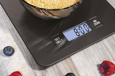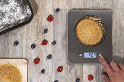 Ak nechcete pri varení alebo pečení tráviť veľa času vážením a prípravou prísad, potrebujete funkciu TARE. Nemusíte vážiť každú zložku v samostatných miskách, ale pridávajte jednu zložku k druhej v jednej miske. Stačí stlačiť tlačidlo TARE, čím sa displej vynuluje, a môžete vážiť ďalej. Potom už len zamiešajte. Ako jednoduché!