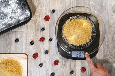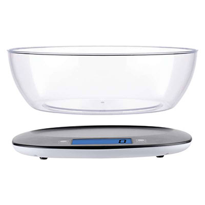 Váha obsahuje plastovú misku, v ktorej môžete odvážiť cukor, orechy, olej alebo porciu zeleniny. Povrch vážiacej plochy z plastu ABS je vytvarovaný tak, aby držal misku a zabránil jej skĺznutiu. Potraviny môžete vážiť aj bez misky priamo na vážiacej ploche alebo použiť napríklad tanier. Jednoduchý dizajn váhy sa hodí do každej modernej kuchyne. Ak pečiete často, majte váhu vždy poruke na kuchynskej linke.