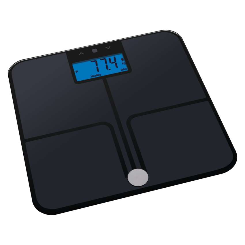 Digitálna osobná váha s výpočtom BMI indexu (množstvo tuku, vody a svalovej hmoty v tele).