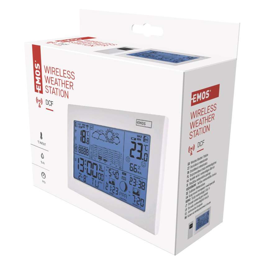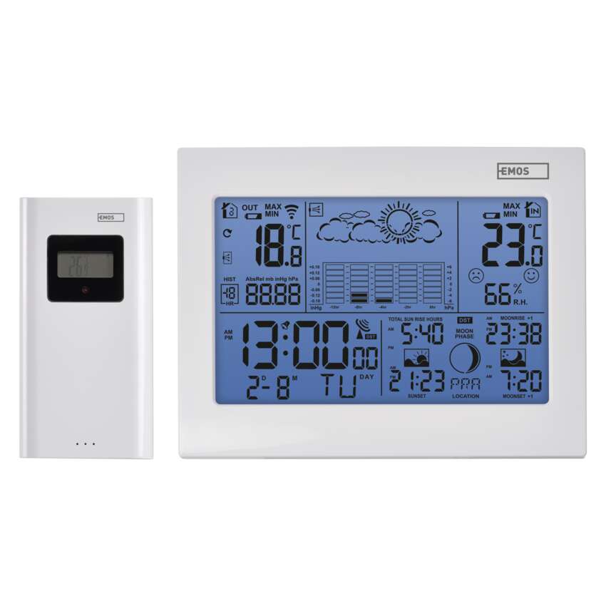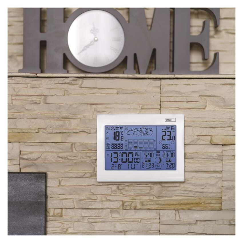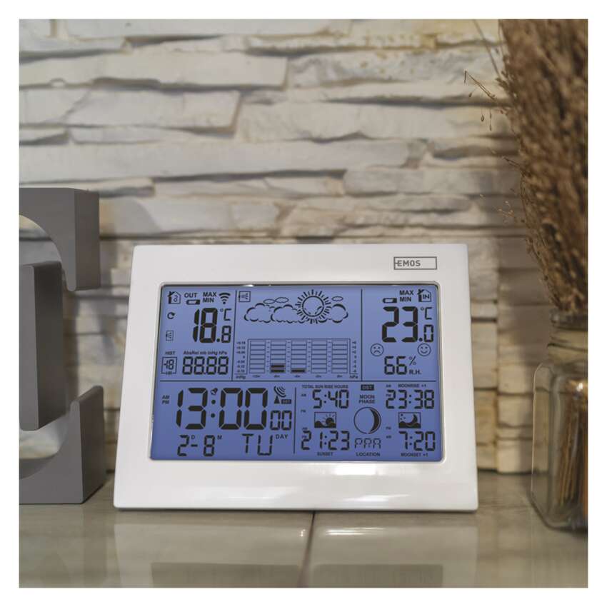 Pravidelne sledovať aktuálny stav počasia, aj jeho vývoj v budúcnosti, sa jednoznačne oplatí. Výrazne nám to totiž uľahčí rozhodovanie, čo si obliecť, či zaliať záhradu hneď alebo s tým chvíľu počkať, aj čo podniknúť vo voľnom čase. Niektorí sa v tomto ohľade možno dodnes spoliehajú na svoje boľavé kolená (kedy bolesť vraj značí blížiaci sa dážď), rozumnejším riešením je však zveriť túto úlohu na starosť domácej meteostanici EMOS. Na jej prehľadne zorganizovanom displeji sa dočítate presný čas, dátum, aktuálnu teplotu a vlhkosť (vovnútri aj vonku), tlak vzduchu, predpoveď počasia na nasledujúcich 12-24 hodín, čas východu a západu slnka a mnoho ďalšieho. Ak si ju postavíte na nočný stolík, oceníte aj budík s funkciou opakovaného budenia.