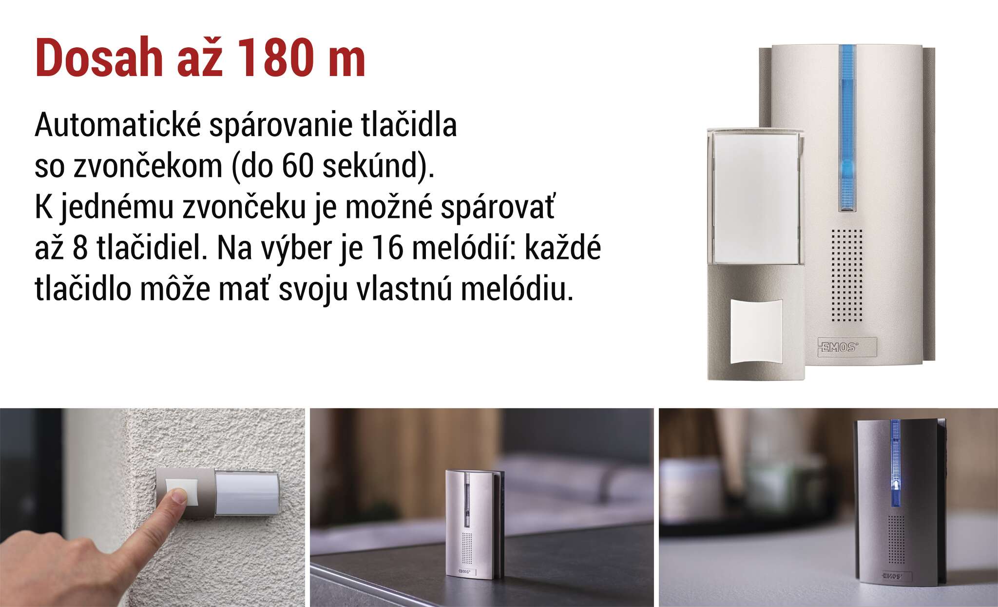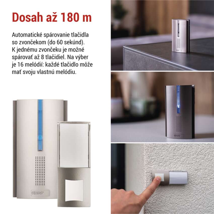 Moderný bezdrôtový zvonček, ktorý prináša kombináciu elegantného dizajnu, bezchybných funkcií a technológie, na ktorú sa môžete spoľahnúť. Vďaka integrovanému opakovaču signálu a dosahu až 180 metrov dokáže prepojiť váš dom, záhradu, garáž a vzdialenú bránu - žiadne káble, žiadne problémy.