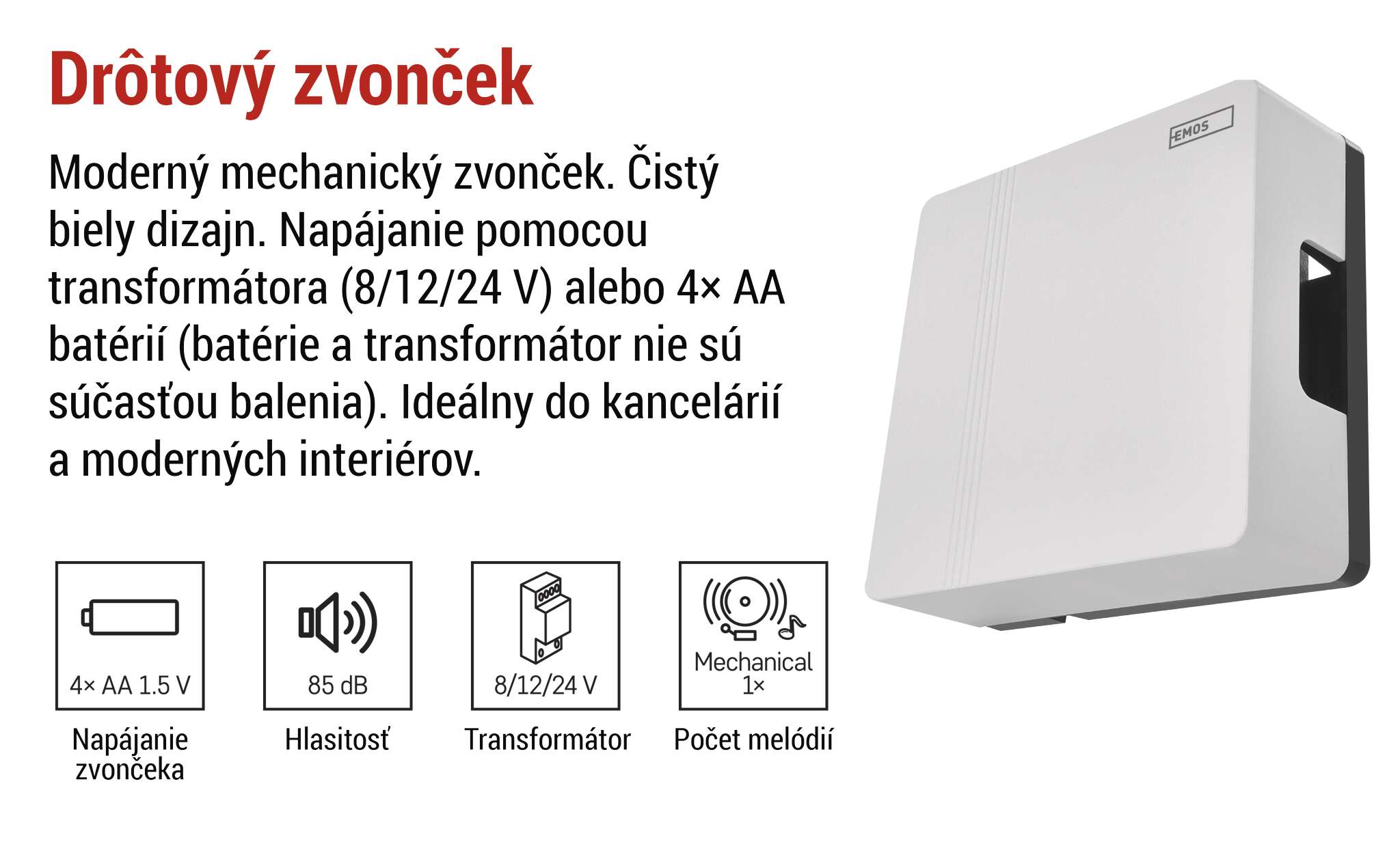 Vyzváňací tón 85 dB zaručuje, že návštevníka neprepočujete. Vďaka jednoduchému zapojeniu a bez zložitého nastavovania je tento model skvelou voľbou pre každého.