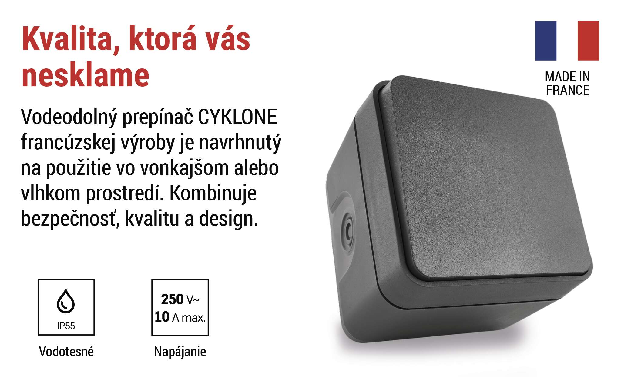 Objavte náš vysokokvalitný vonkajší nástenný vypínač CYKLONE - ideálne riešenie na bezpečné a pohodlné používanie na terasách, záhradách alebo balkónoch. Vďaka odolnosti voči poveternostným vplyvom a modernému dizajnu vám umožní jednoducho ovládať osvetlenie, elektrické náradie alebo dekorácie.