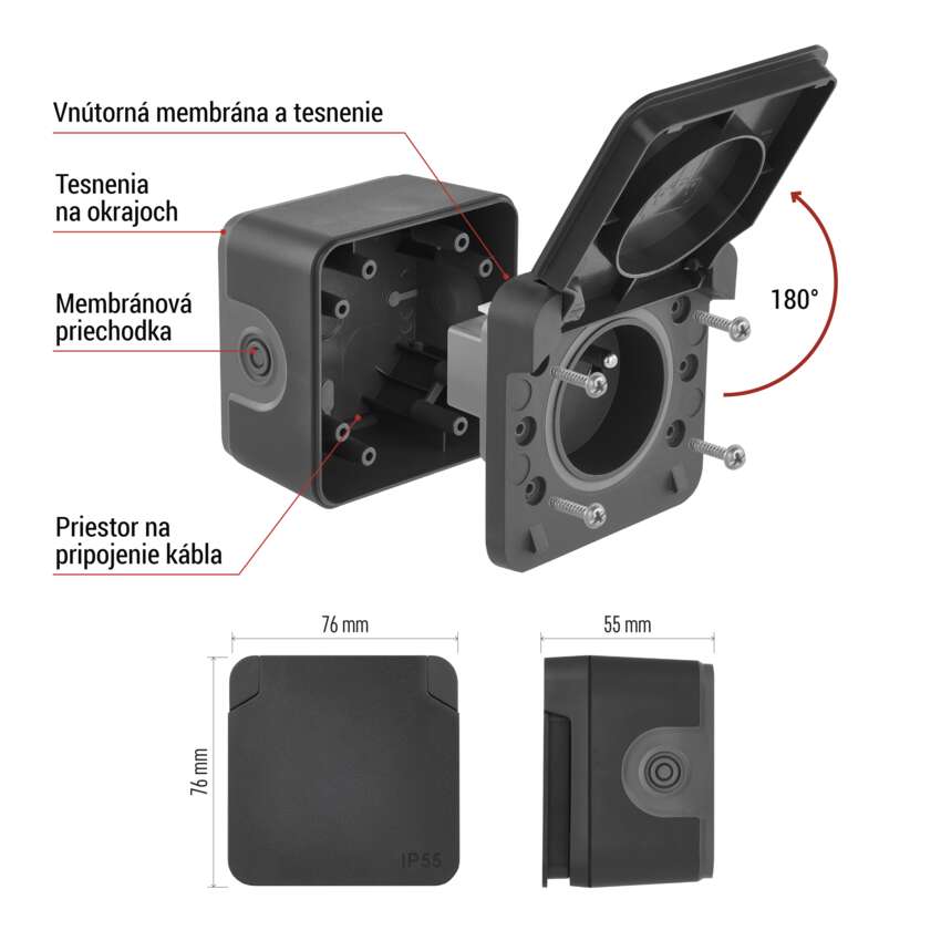 - Krytie IP55 chráni pred prachom a striekajúcou vodou, ideálne do náročných podmienok