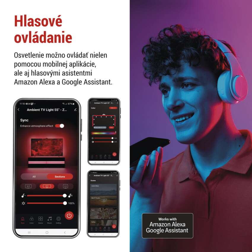 - kompatibilný s hlasovými asistentmi Amazon Alexa a Google Assistant