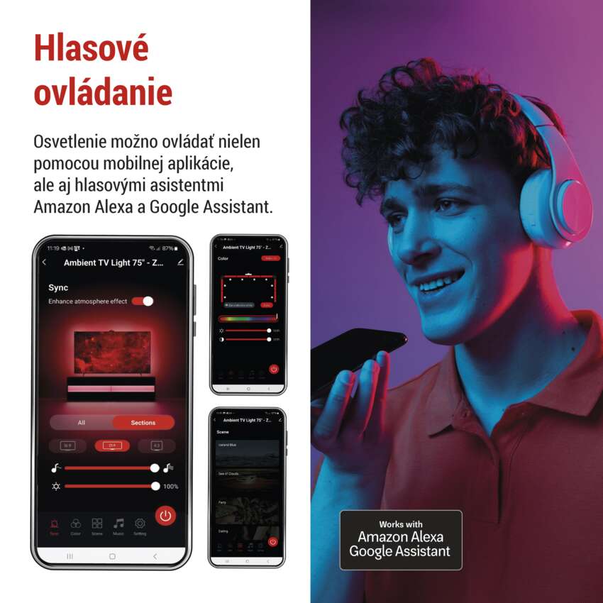 - kompatibilný s hlasovými asistentmi Amazon Alexa a Google Assistant