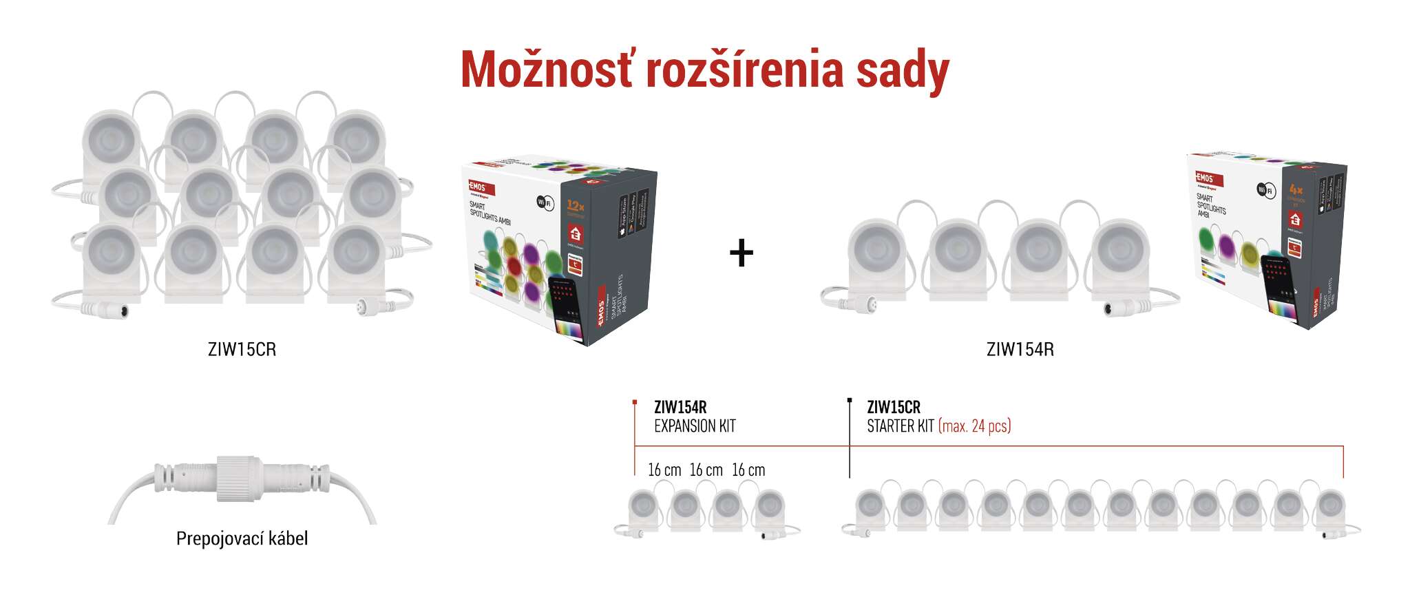 Táto rozširujúca sada obsahuje 4 bodové LED svetlá a je určená na predĺženie štartovacej sady ZIW15CR. Vďaka jednoduchému prepojeniu môžete zvýšiť celkový počet svetiel až na 24 – to znamená až 3 rozširujúce sady pripojené k štartovacej sade. Tento systém vám umožní efektívne osvetliť celú izbu, dlhú chodbu alebo väčší obytný priestor podľa vašich potrieb. Súprava je ideálna pre tých, ktorí hľadajú flexibilné a modulárne riešenie osvetlenia.