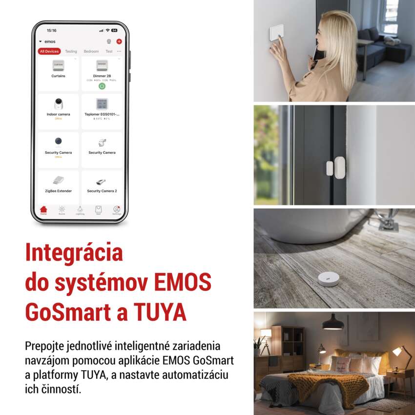 Vytvorte si vlastnú inteligentnú domácnosť s inteligentnými zariadeniami EMOS GoSmart a ďalšími zariadeniami kompatibilnými s TUYA. Pripojte jednotlivé produkty, nastavte automatizáciu ich činností a ovládajte ich na diaľku pomocou plne lokalizovanej a intuitívnej mobilnej aplikácie.