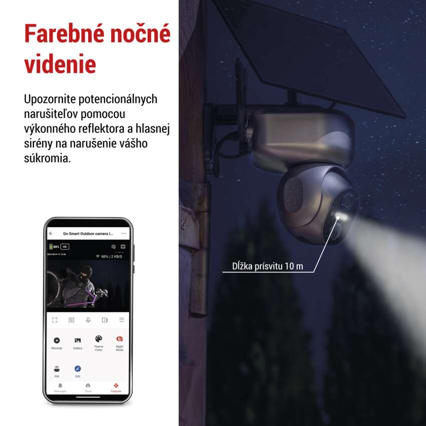 Vonkajšia inteligentná kamera s 4G/LTE pripojením ponúka revolučnú kombináciu funkcií, ktorá zaručuje bezpečnosť a umožňuje flexibilitu pri umiestnení. Vďaka pripojeniu cez mobilnú sieť je možné monitorovať vybranú oblasť kdekoľvek, kde nemáte pripojenie Wi-Fi, ale je tam pokrytie mobilným signálom, napríklad na chate pri lese, včelíne alebo na odľahlých pozemkoch. Majte tak svoj majetok pod kontrolou, nech ste kdekoľvek. Vďaka oznámeniam na vašom mobilnom zariadení môžete reagovať na každú udalosť.