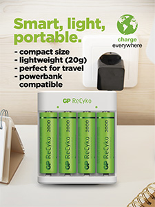 Spoločnosť GP týmto uvádza na trh ekologickú generáciu nabíjacích batérií a nabíjačiek pod označením ReCyko, ktoré využívajú moderné výrobné technológie a nadväzujú na úspech predchádzajúcich radov nabíjacích batérií. Rad ReCyko ponúka špičkové aj obyčajné nabíjačky s mnohými užitočnými vlastnosťami. Ich najväčšou nespornou výhodou je bezstarostné nabíjanie. Batérie ReCyko si tak s nabíjačkou Economy ľahko nabijete kedykoľvek a kdekoľvek.