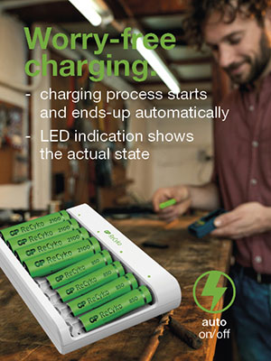 Nová generácia nabíjačiek GP, ktorá zahŕňa produkty pre bežné aj profesionálne použitie, totiž prináša unikátny koncept nabíjania. Používaním nabíjačiek GP spolu s batériami ReCyko tak šetríte ako prírodu, tak aj svoju peňaženku.