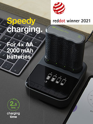 S nabíjačkou Pro nielenže budete mať svoje nabíjacie batérie pripravené na okamžité použitie extrémne rýchlo - už počas 2,5 hodín, vďaka inteligentnému nabíjaniu ale navyše predĺžite aj ich životnosť. Nabíjačka GP Professional je totiž vybavená automatizovanou elektronikou, ktorá riadi proces nabíjania tak, ako je práve potreba. Vďaka tomu nedochádza ku znehodnocovaniu batérií a k dlhodobému znižovaniu ich výkonu. Okrem toho nabíjačka Professional nabíja každú batériu zvlášť a o jej aktuálnej kondícii vás informuje LED displej na dokovacej stanici. Nabíjačka navyše dokáže diagnostikovať poškodené alebo nenabíjacie batérie a v prípade potreby nabíjanie úplne zastaviť. A ak už toho majú vaše batérie naozaj veľa za sebou, s nabíjačkou GP Professional im ľahko doprajete liečebnú kúru, vďaka ktorej vám budú skvele slúžiť ešte dlho potom.