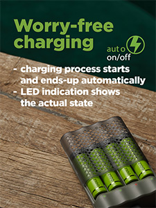 Nová generácia nabíjačiek GP, ktorá zahŕňa produkty pre bežné aj profesionálne použitie, totiž prináša unikátny koncept nabíjania. Používaním nabíjačiek GP spolu s batériami ReCyko tak šetríte ako prírodu, tak aj svoju peňaženku.