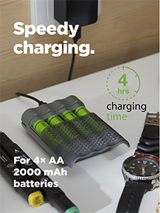 Rýchle a bezpečné nabitie - to je základ, ktorý od nabíjacích batérií očakáva každý užívateľ. S nabíjačkou GP Speed dosiahnete maximálnej kapacity vašich nabíjacích batérií v prípade ich úplného vybitia už za menej ako 4 hodiny.