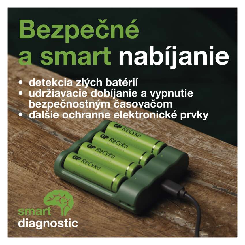 Nová generácia nabíjačiek GP, ktorá zahŕňa produkty pre bežné aj profesionálne použitie, totiž prináša unikátny koncept nabíjania. Používaním nabíjačiek GP spolu s batériami ReCyko tak šetríte ako prírodu, tak aj svoju peňaženku.