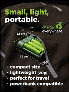 Vstupné USB rozhranie nabíjačky umožňuje jej použitie takmer kdekoľvek. Batérie tak môžete nabíjať pomocou autoadaptéra, cez USB port vášho notebooku či powerbanku alebo priamo zo siete bez ohľadu na to, či ste zrovna doma, v meste, alebo v prírode.