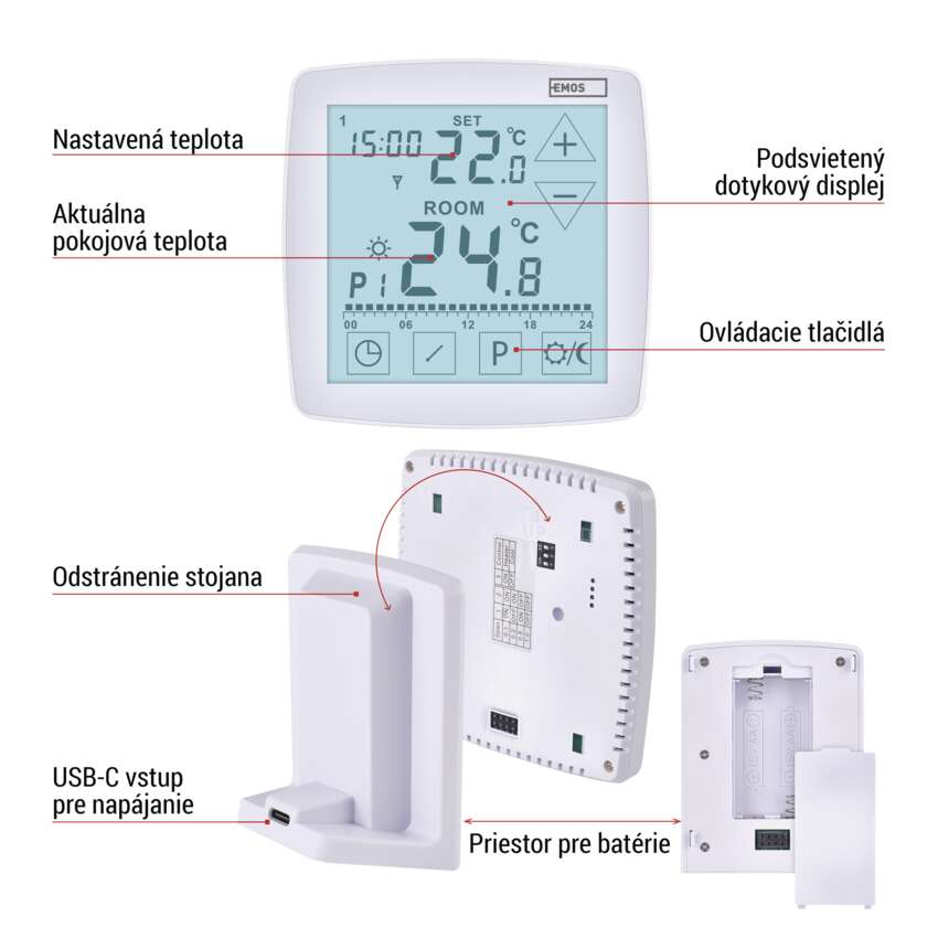 Termostat P56A11 spája praktickú funkčnosť s moderným, nadčasovým dizajnom, ktorý sa hodí do každého interiéru. Podsvietený dotykový displej je prehľadný a intuitívny - veľké číslice uľahčujú prehľad o aktuálnej a nastavenej teplote a vďaka podsvieteniu sa pohodlne ovláda aj v noci bez nutnosti zapínať svetlo.