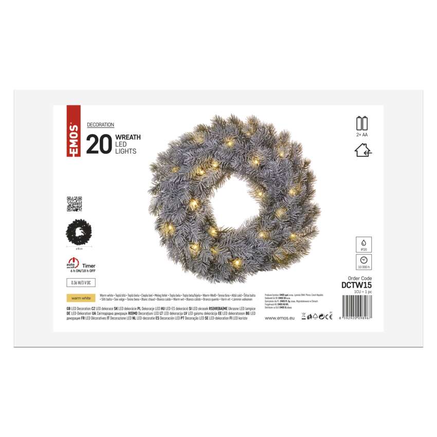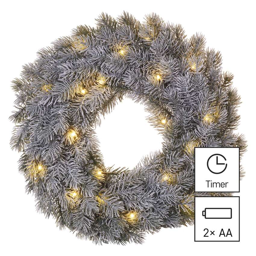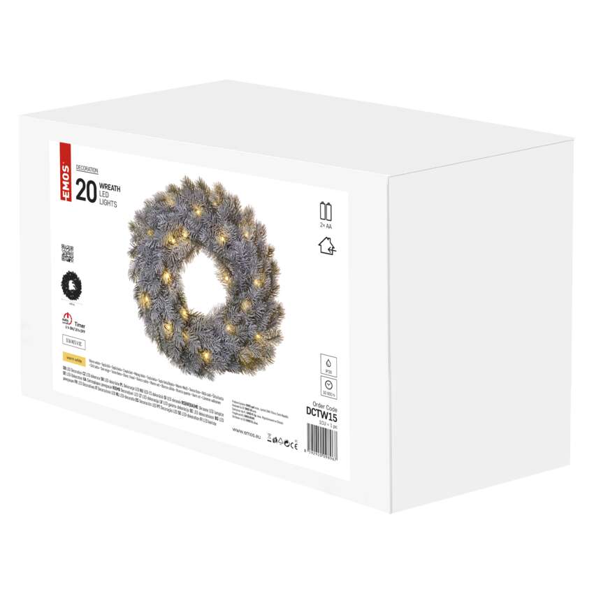 LED dekorácia – adventný veniec, 40 cm, 2x AA, vnútorný, teplá biela, časovač