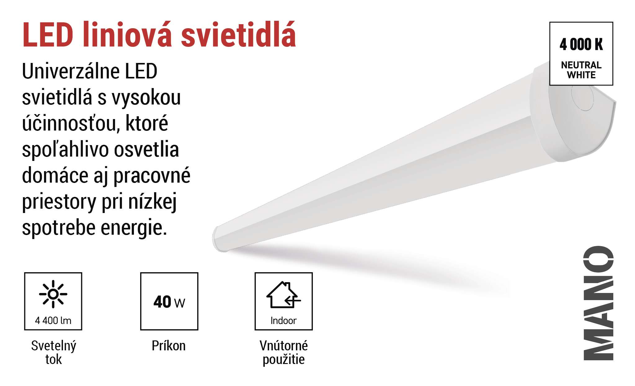 LED liniové svietidlo MANO 40W, neutrálna biela