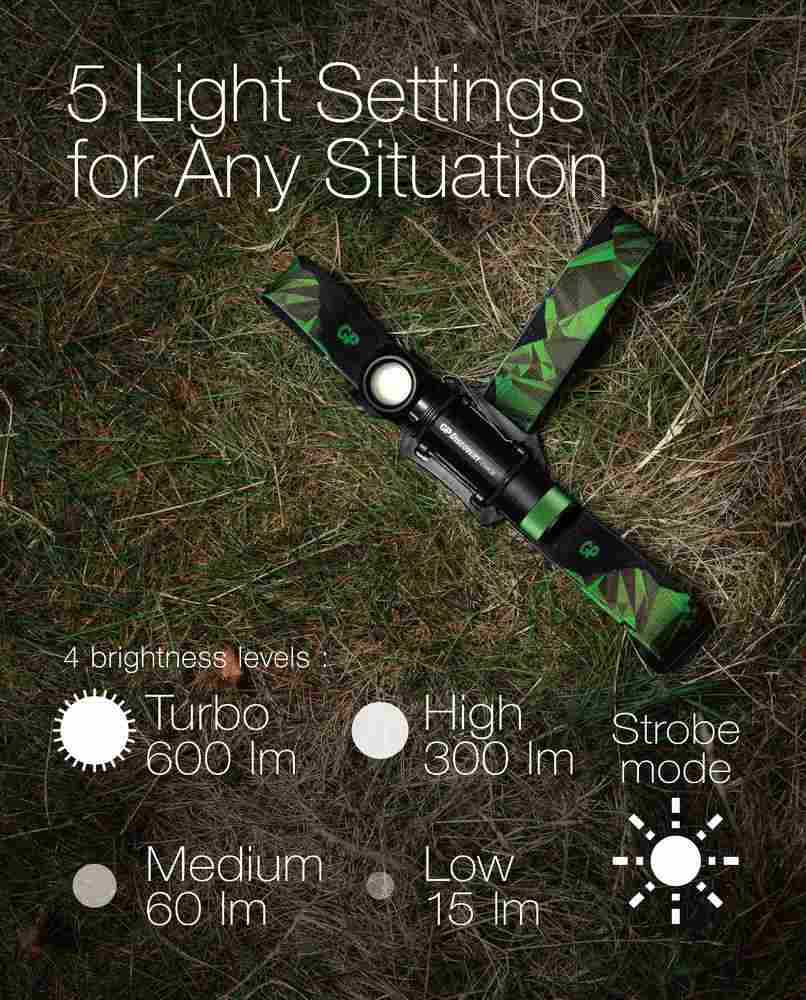Nie je svetlo ako svetlo. V spoločnosti GP veľmi dobre vedia, že každá činnosť si vyžaduje inú intenzitu svetla. Preto čelovku CHR35 vybavili piatimi rôznymi režimami svetla, vďaka ktorým si ju ľahko obľúbite.