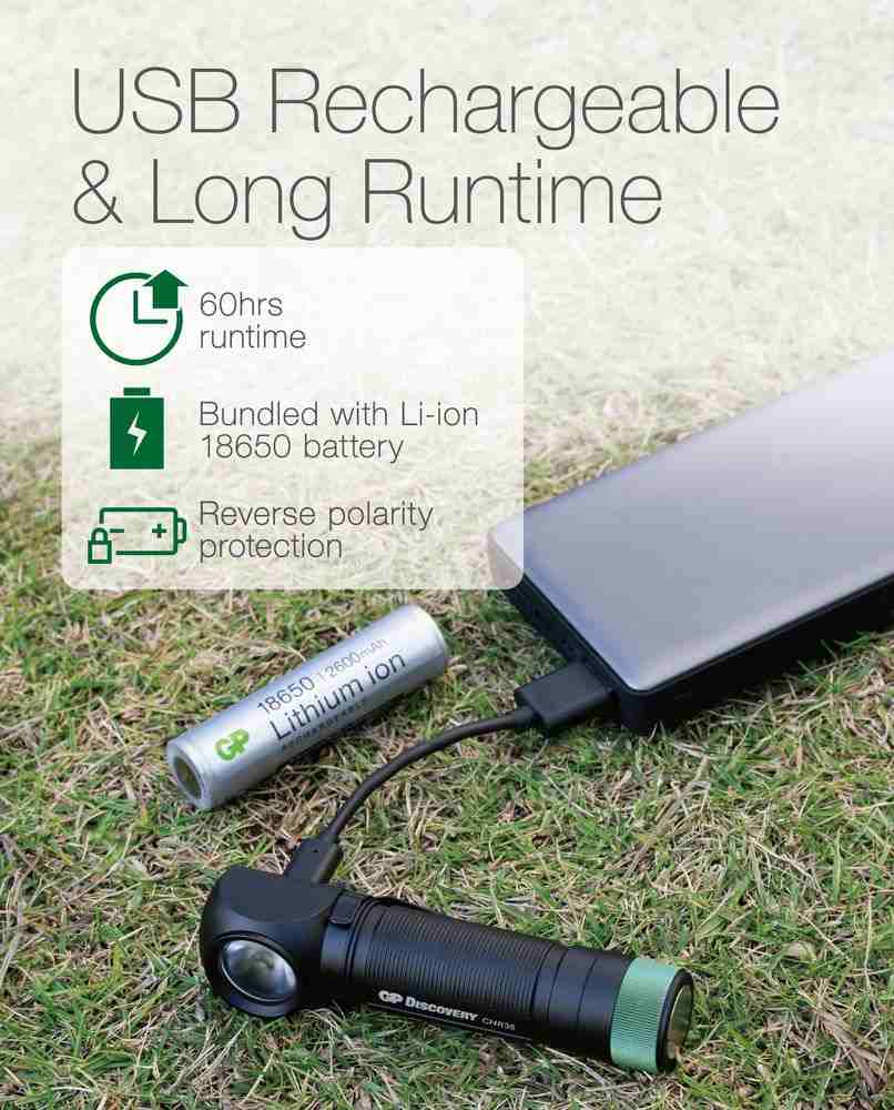 Vonkajšia čelovka GP Discovery Series je dokonalým doplnkom na pracovné a voľnočasové aktivity. Jej dlhá výdrž, rýchle nabíjanie prakticky kdekoľvek, možnosť umiestniť baterku kamkoľvek potrebujete, odolnosť, nastaviteľné režimy svietenia a mnoho ďalších funkcií ju predurčujú na každodenné pohodlné používanie.