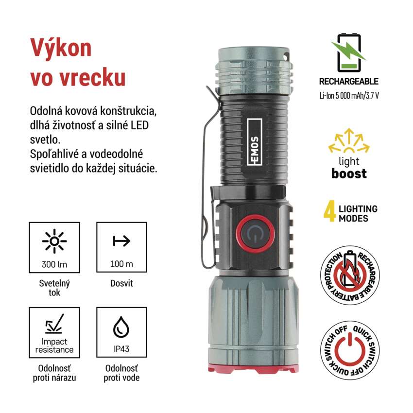 LED nabíjacie kovové svietidlo 300 lm, 700 mAh