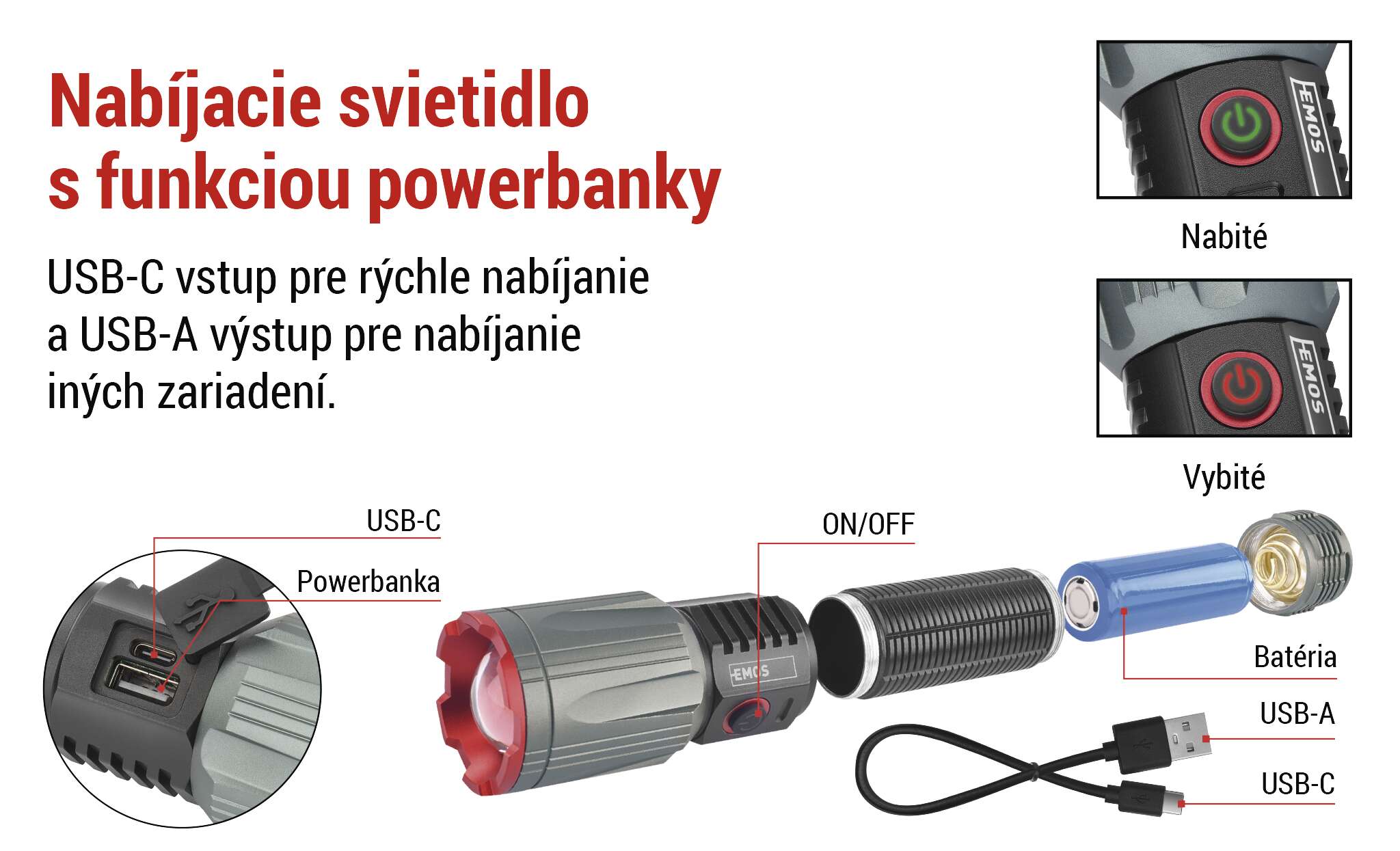 Nabíjacia LED baterka EMOS je určená na každodenné použitie v teréne a na stavbách. Dlhodobo odolné kovové telo, vysoký svetelný tok a dlhá životnosť z nej robia ideálny nástroj pre firmy, technikov a záchranárov.