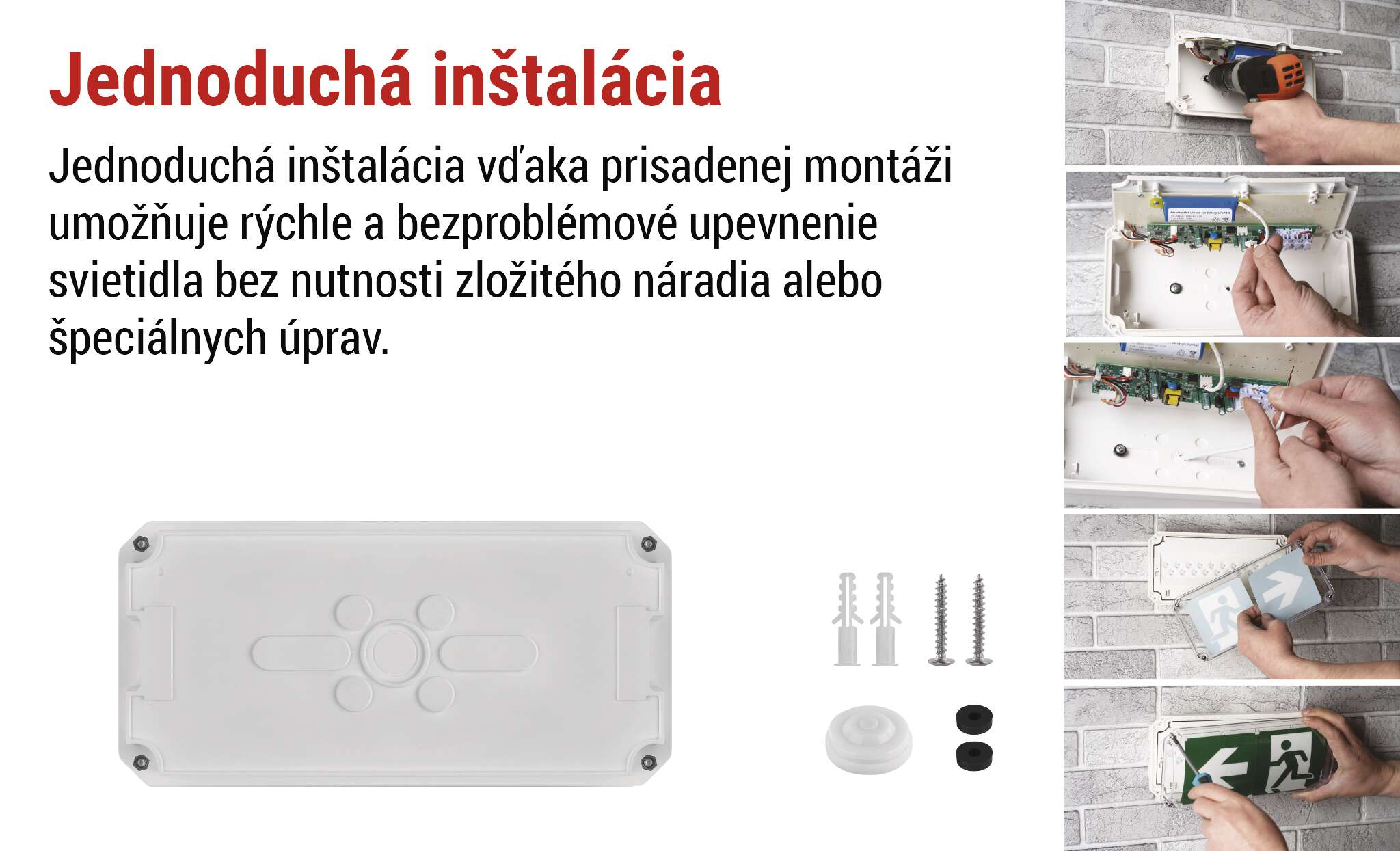 Vďaka studenej bielej farbe svetla poskytuje jasné a kontrastné osvetlenie, ktoré zaručuje bezpečnú orientáciu a maximálnu viditeľnosť na únikových cestách a vo vonkajšom prostredí.