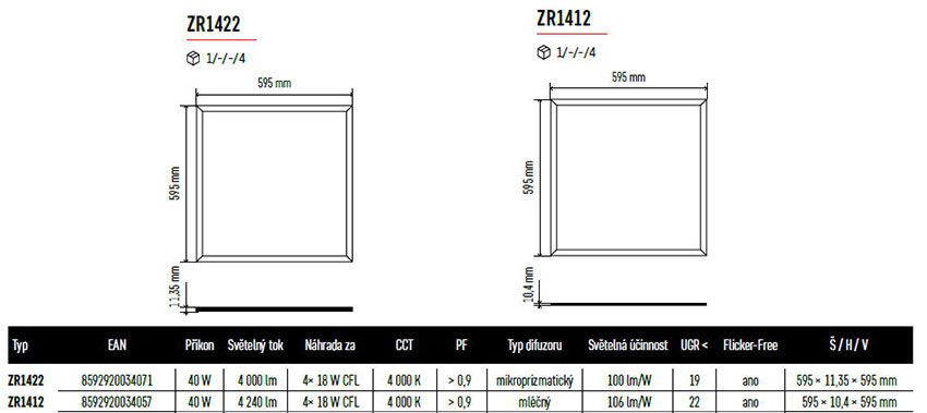 LED panel PROXO60×60, štvorcový vstavaný biely, 40W neutrálna b.