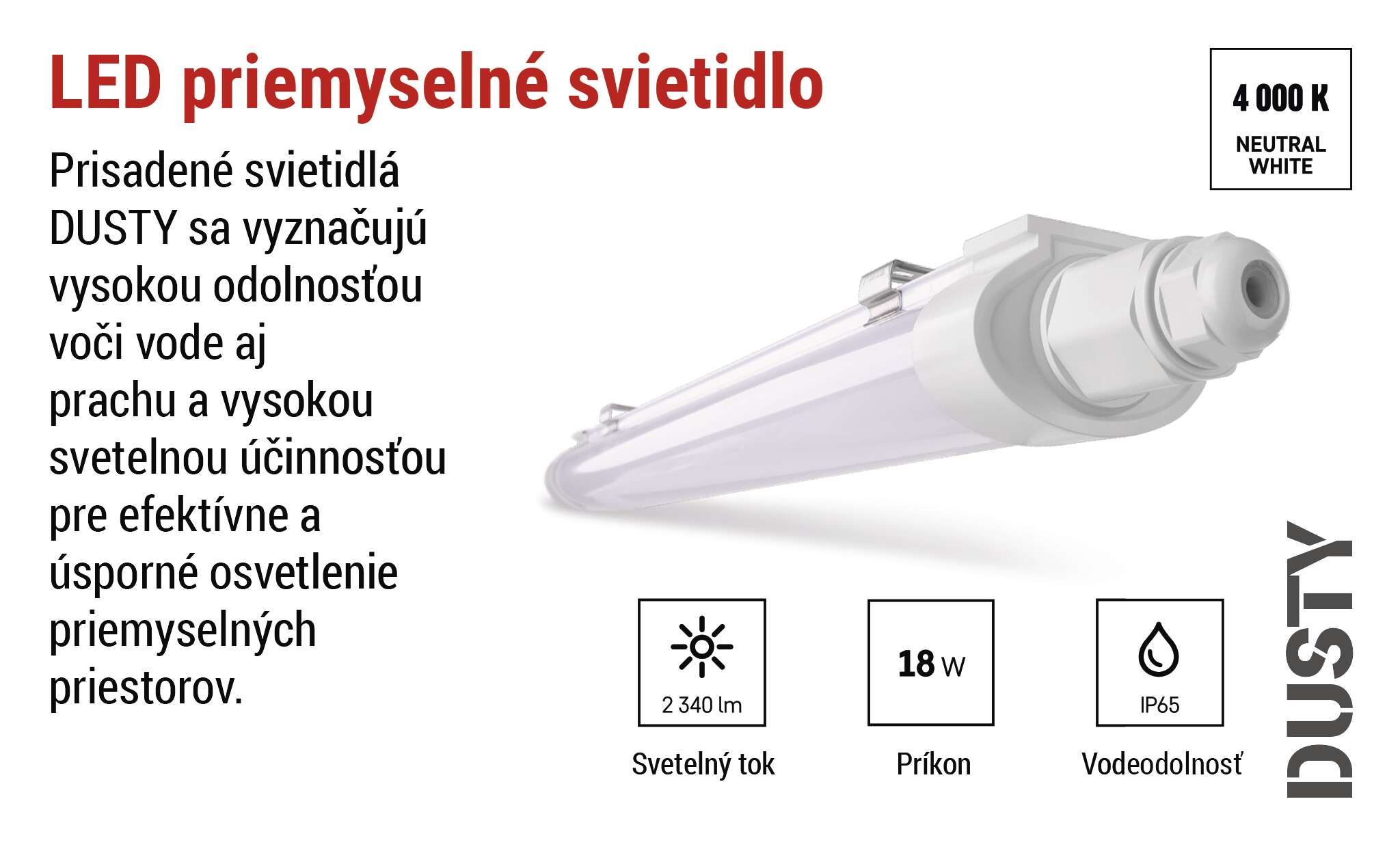 LED prachotesné svietidlo DUSTY 18W neutrálna biela, IP65