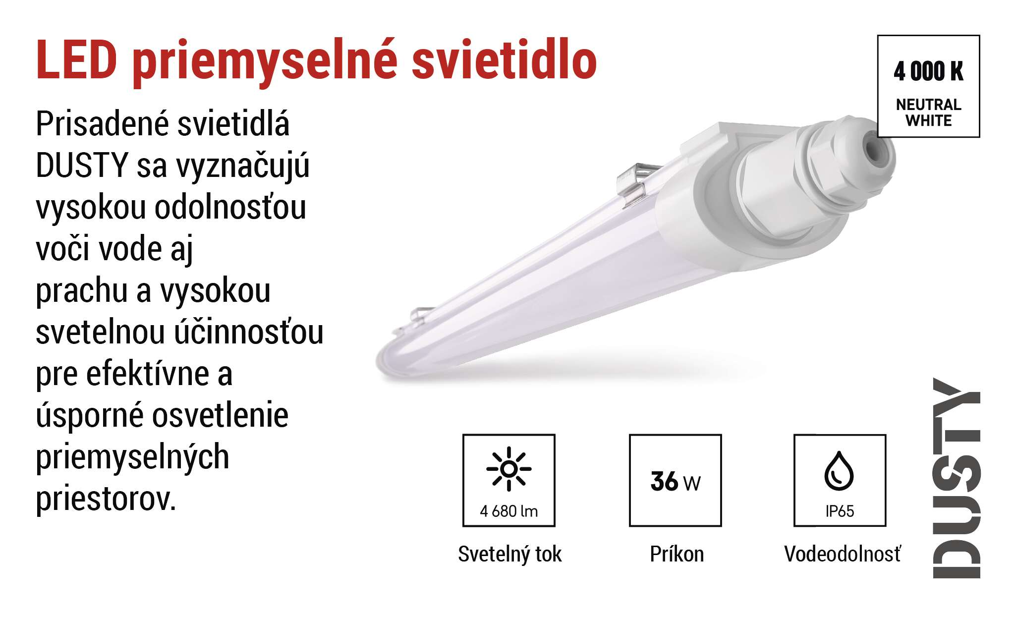 LED prachotesné svietidlo DUSTY 36W neutrálna biela, IP65