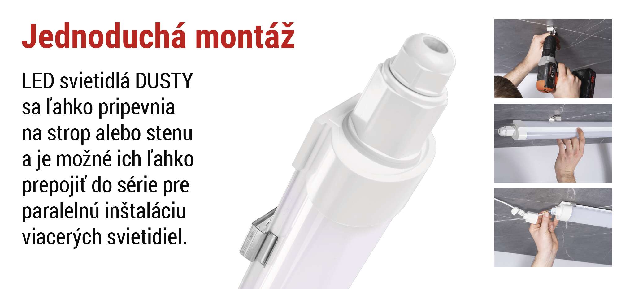 Naše prachotesné svietidlá myslia nielen na výkon a odolnosť, ale aj na vás. Premyslený dizajn a praktické detaily umožňujú rýchlu, jednoduchú a bezproblémovú inštaláciu. To vám ušetrí čas a náklady na inštaláciu bez toho, aby ste museli robiť kompromisy v kvalite alebo spoľahlivosti.