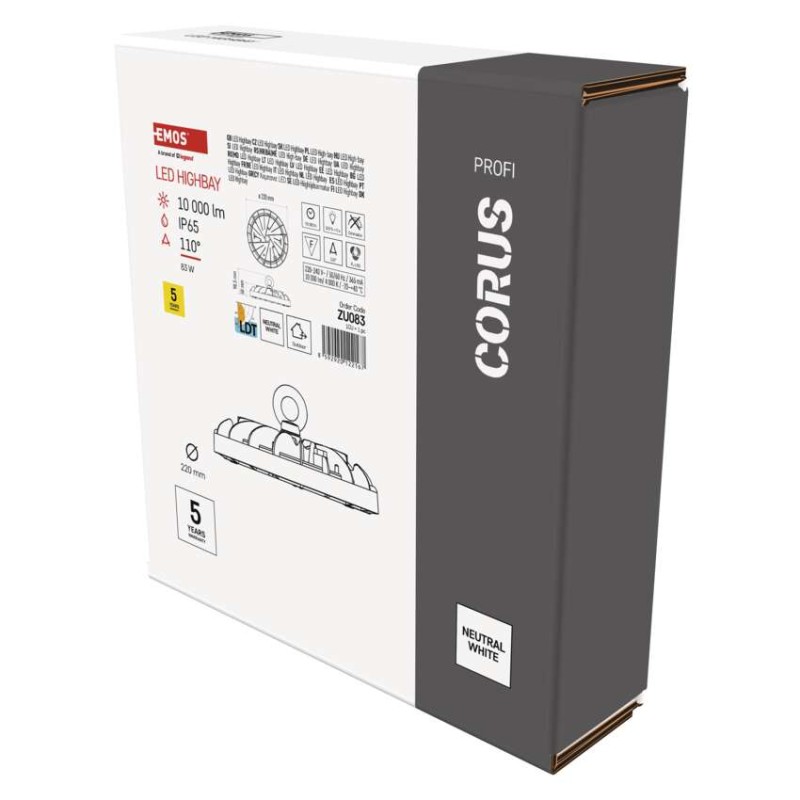 Zabezpečte optimálne osvetlenie svojich priestorov so svietidlom highbay CORUS. Vysokokvalitné LED čipy poskytujú svietidlu vysokú svetelnú účinnosť 120 lm/W a dlhú životnosť. Vynikajúci výkon a kvalita svetla vám pomôžu osvetliť veľké priemyselné plochy, ako sú sklady, výrobné haly a pod.
