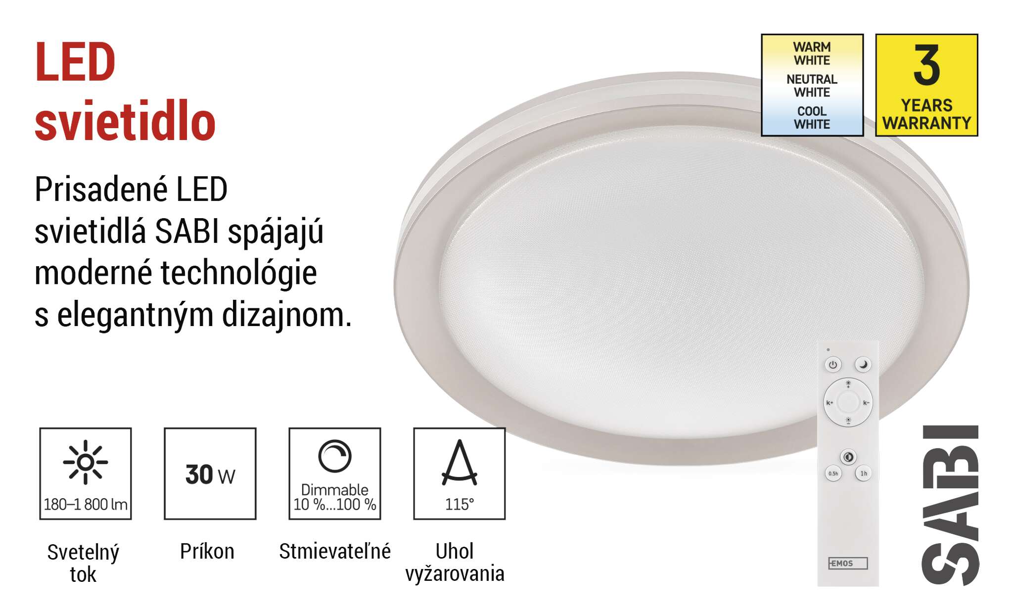 Svietidlá SABI sa dodávajú s 3-ročnou zárukou, ktorá vám dáva istotu a pokoj pri každodennom používaní. Každý detail svietidla je navrhnutý pre dlhodobú životnosť a spoľahlivý výkon, takže sa môžete sústrediť len na príjemné a efektívne osvetlenie interiéru. Záruka sa vzťahuje na všetky hlavné funkcie svietidla vrátane stmievania, zmeny teploty svetla diaľkového ovládania, čo potvrdzuje kvalitu prémiového radu svietidiel SABI.