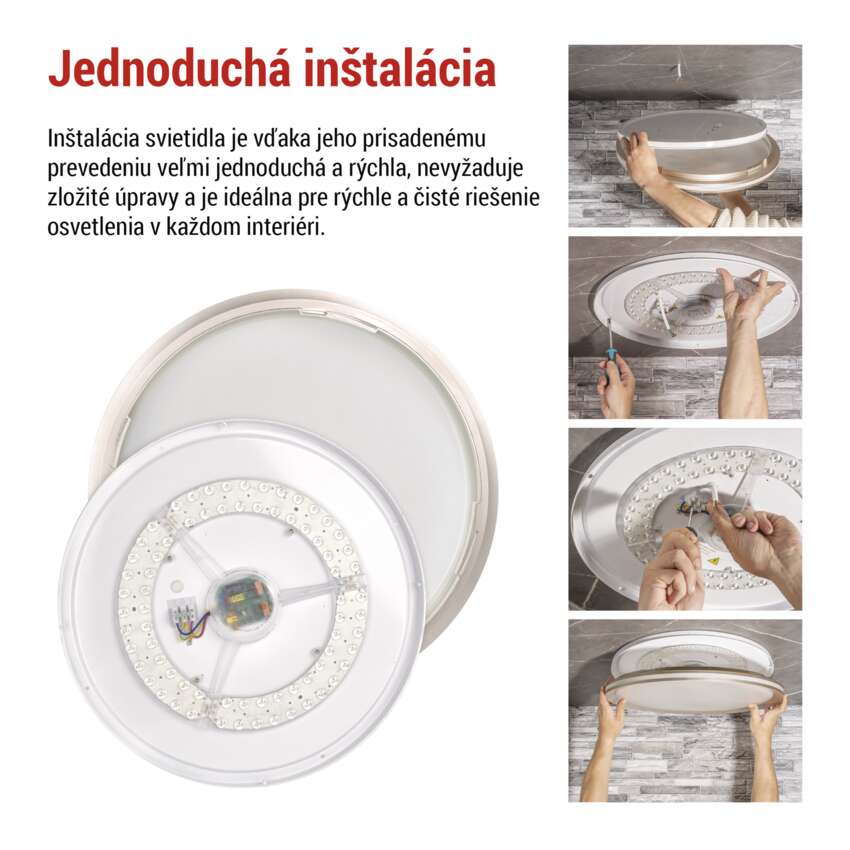 Svietidlo ľahko pripevníte pomocou štandardných úchytiek pre moderné, rovnomerné a štýlové osvetlenie interiéru. Toto riešenie šetrí čas a energiu a je ideálne pre nové a rekonštruované priestory.